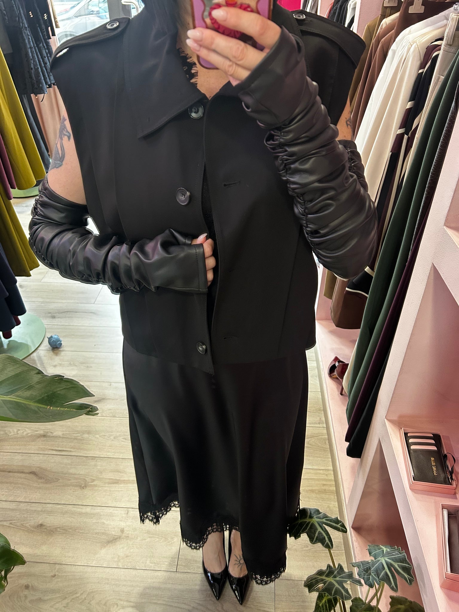 Guanti arricciati in ecopelle